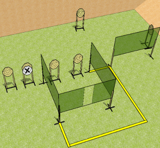 Start Position: Completely outside the shooting area, handgun loaded and holstered.